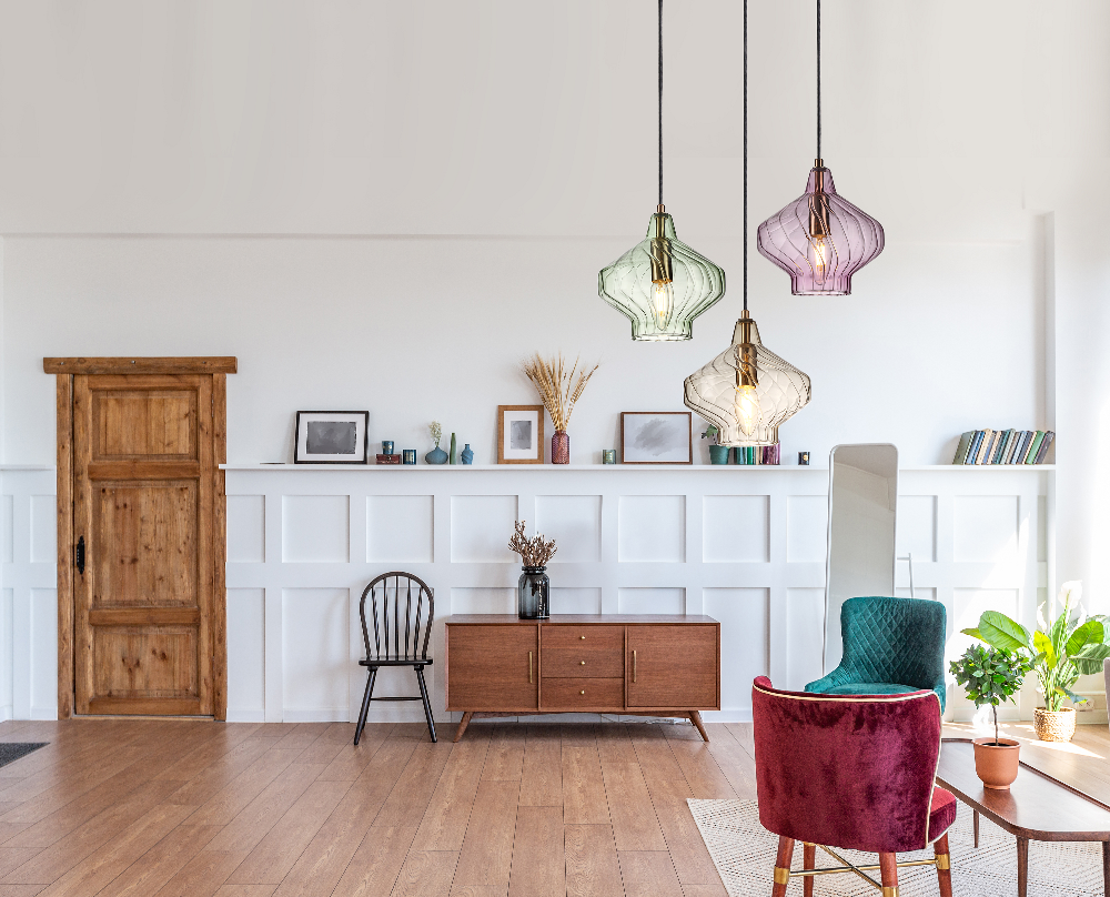 Скандинавское освещение – это не только белые плафоны и палевые абажуры. Люстры и подвесные светильники из цветного стекла также прекрасно могут дополнить традиционный северный интерьер. Они привнесут в пространство новую энергию и жизнерадостное настроение, которого порой так не хватает в слишком строгих и холодных нордических интерьерах. А за счет прозрачности стекла новый цвет будет внедрен в пространство мягко и ненавязчиво.